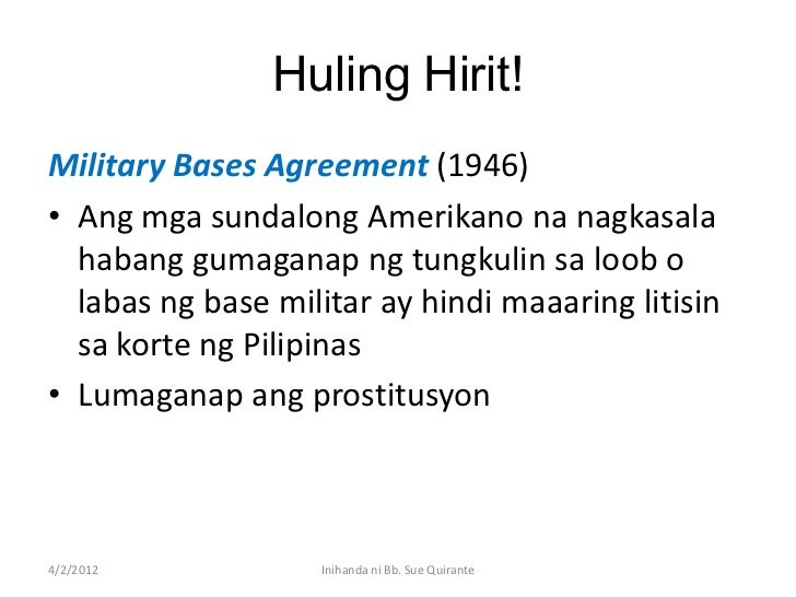 View AP6Q3week 1 day2-Kasunduang Base Militar sa Pilipinas 1pptx from AA 1AP 6 Ugnayang Pilipino-Amerikano at Kasunduang Militar Maylene M.