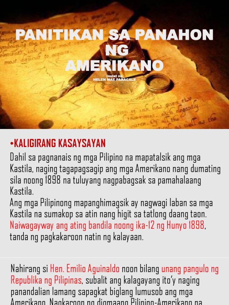 Para sa kaniya ang teatro ay mabisang instrumento upang ikintal sa mga Pilipino ang pagiging makabayan. PANITIKAN SA PANAHON NG AMERIKANO KALIGIRANG KASAYSAYAN Ang mga Pilipinong mapanghimagsik ay nagwagi laban sa mga Kastila na sumakop sa atin nang higit sa tatlong daang taon. Naiwagayway ang ating bandila noong ika-12 ng Hunyo 1898 tanda ng pagkakaroon natin ng kalayaanNahirang si Hen.