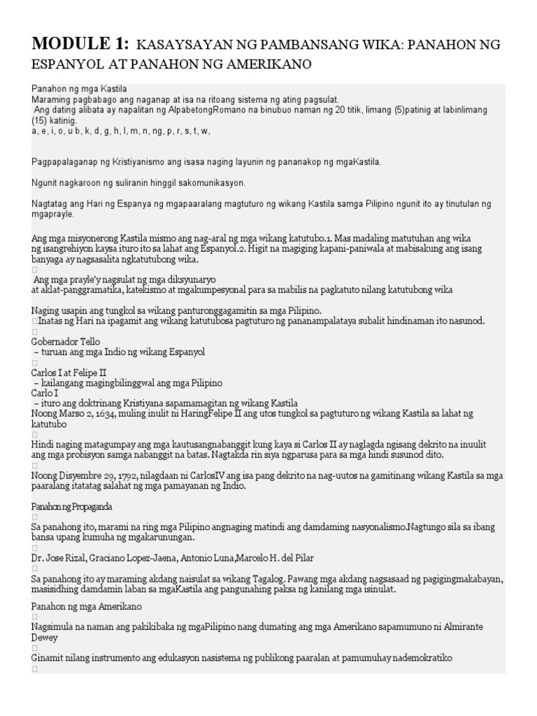 Module 1 Kasaysayan Ng Pambansang Wika P Docx