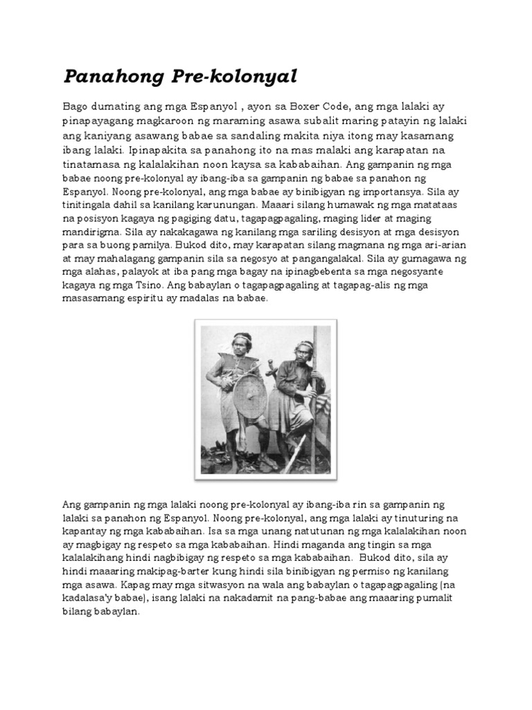 Sa panahon ng Hapones. Bagaman pangkalahatang pinakakahuluganan nila ang kanilang mga sarili sa. Ano ang mga gampanin ng babae at lalaki noong panahon ng espanyol.